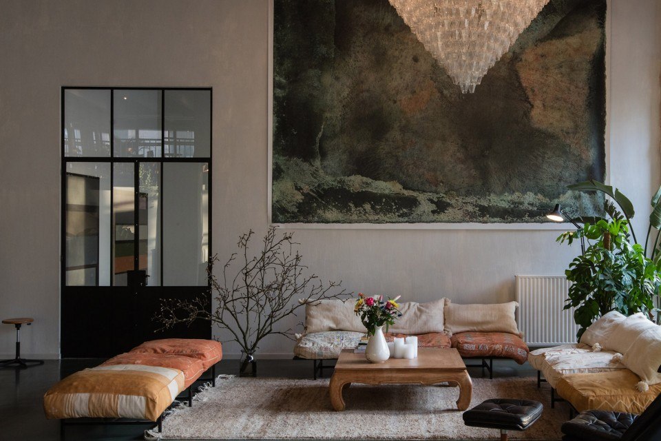 “We create a unique setting per project. We love a mix between old and new, by using natural materials in combination with an ethnic touch. There is a lot of customization in Fosbury & Sons in particular. Customizing often also means experimenting. The bar for instance is built completely of 100% recycled bricks and fibreglass.” – Anaïs Torfs. The interior of Fosbury & Sons intends to leave you with a kind of High Line (New York) – like feeling. When walking around at Fosbury & Sons, you can take different types of walks and discover something new each time. A new route, a new bit of space. Going East focused on that greatness and breathing space to avoid the typical feeling of a classic office.