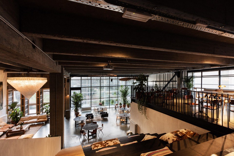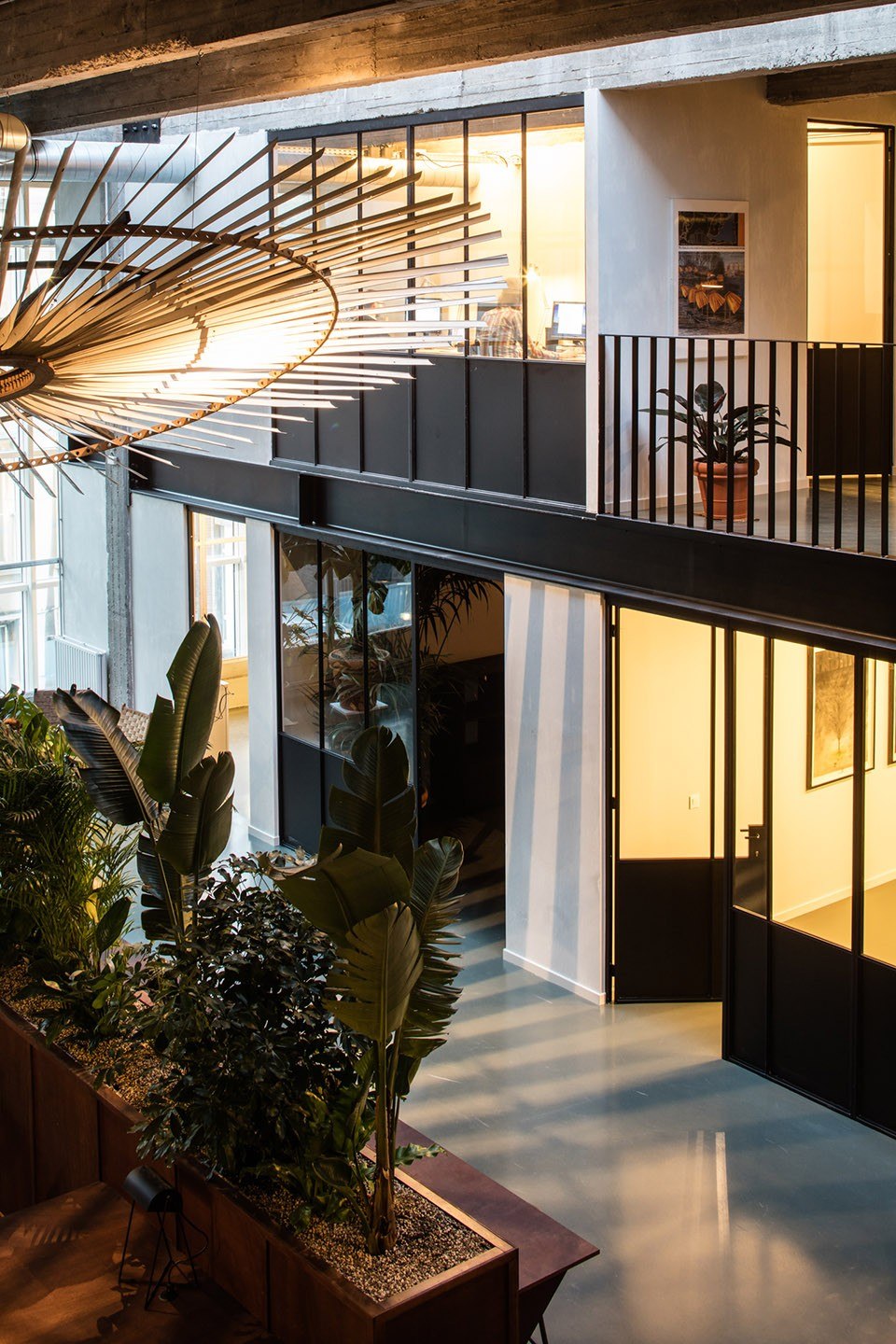 Fosbury & Sons 空间由混凝土柱支撑,6 米高的玻璃俯瞰 King Alert 公园的景观。由室内设计师 Anaïs Torfs 和 Michiel Mertens 创立的安特卫普先锋设计公司 Going East 将这个创意基地转变成了一个专业成熟的工作空间。