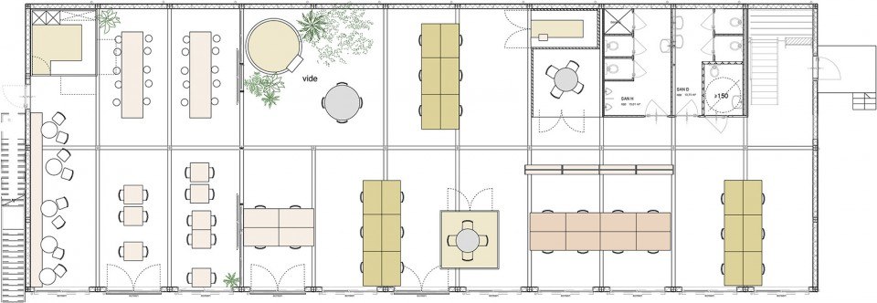 ▼ Fosbury & Sons 的室内设计试图打造一种纽约高线公园的感觉,当人们每次走进这个空间都可以发现一些不同的东西,一条新的路线,或者一个新的空间角落, The interior of Fosbury & Sons intends to leave you with a kind of High Line (New York) – like feeling. When walking around at Fosbury & Sons, you can take different types of walks and discover something new each time.
