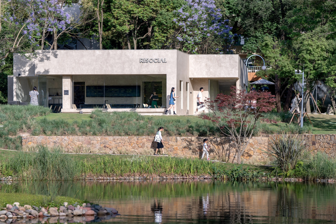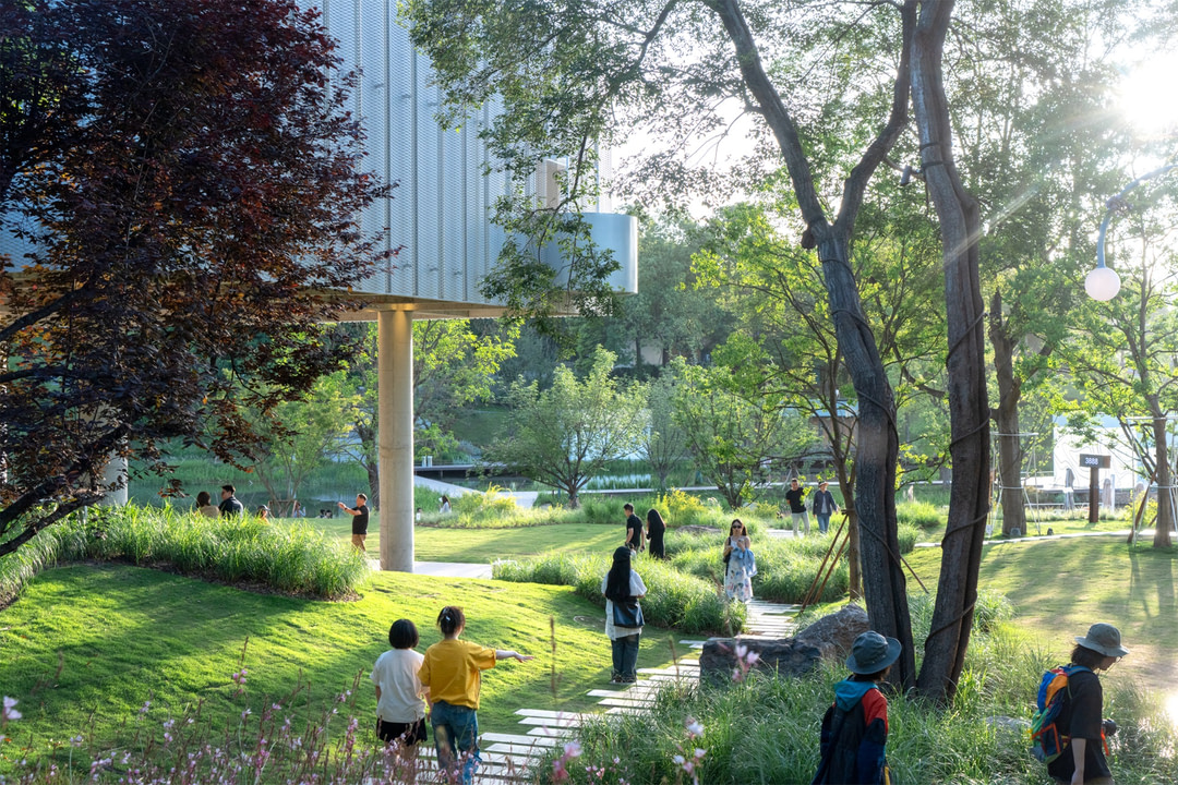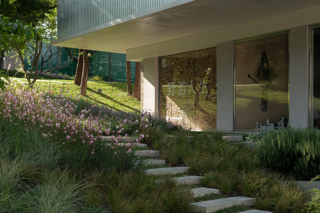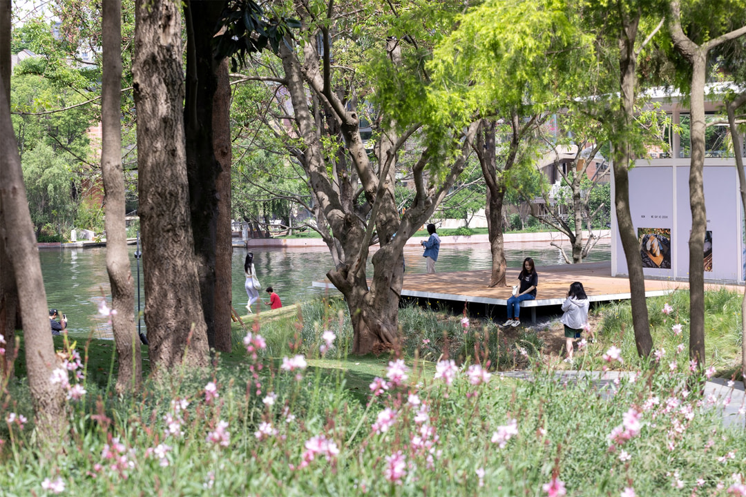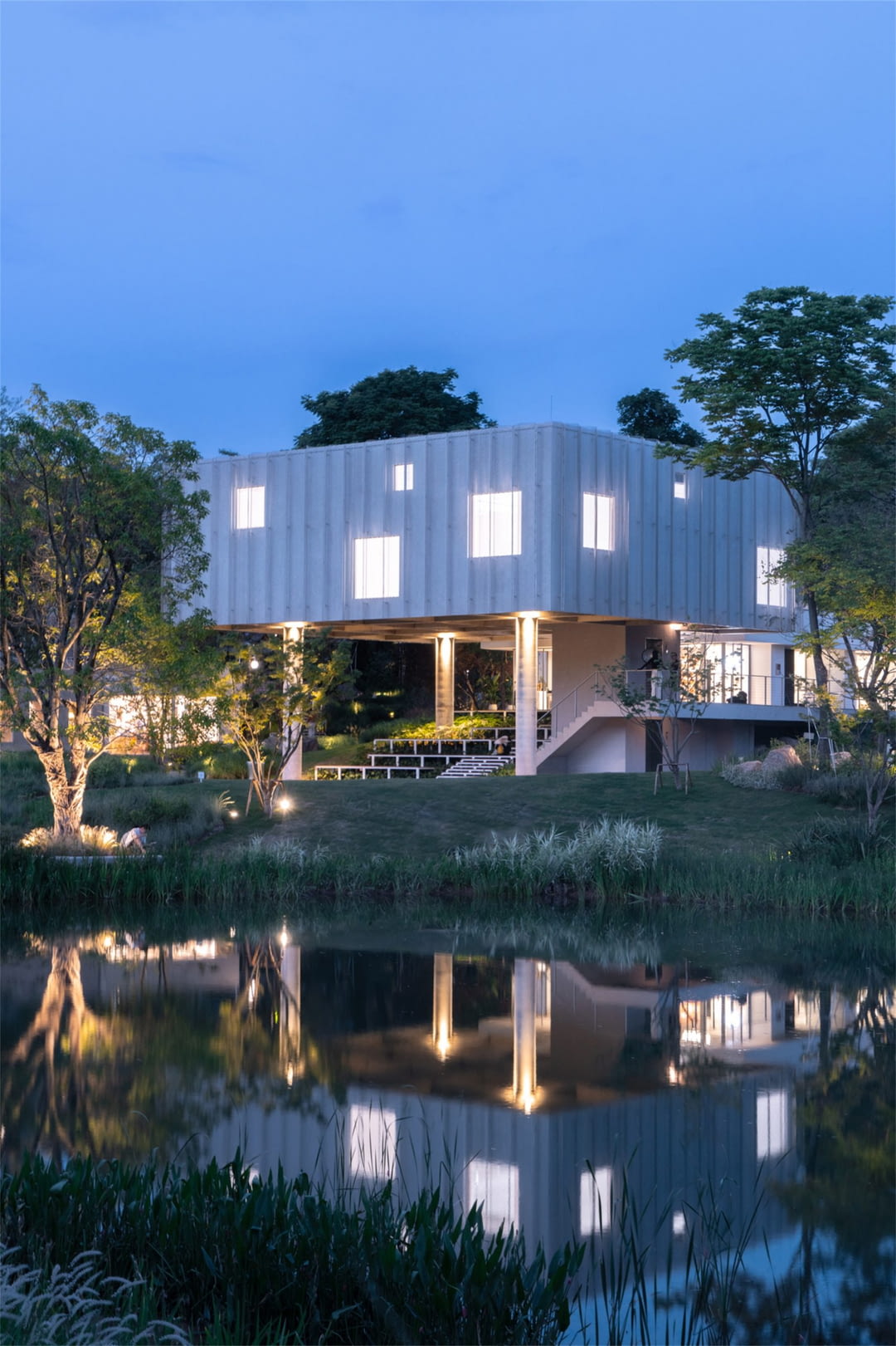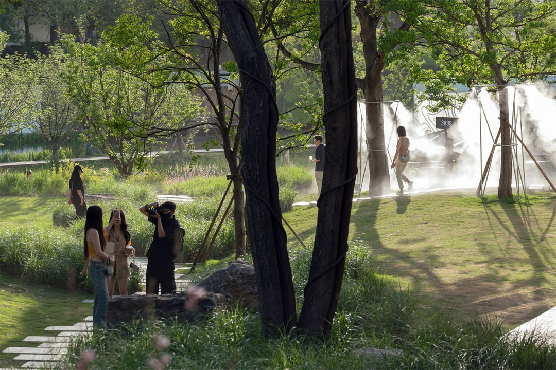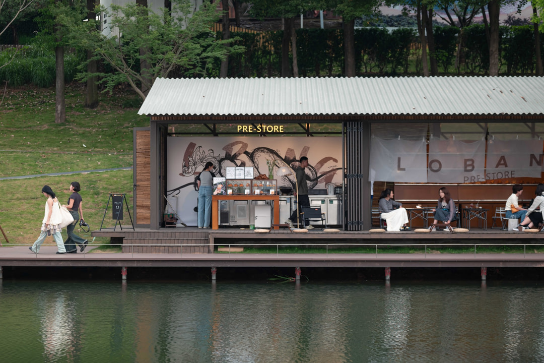 ▽临水增设的自然讲堂作为临时的品牌布展场 A newly added natural lecture hall by the water serves as a temporary brand exhibition space
