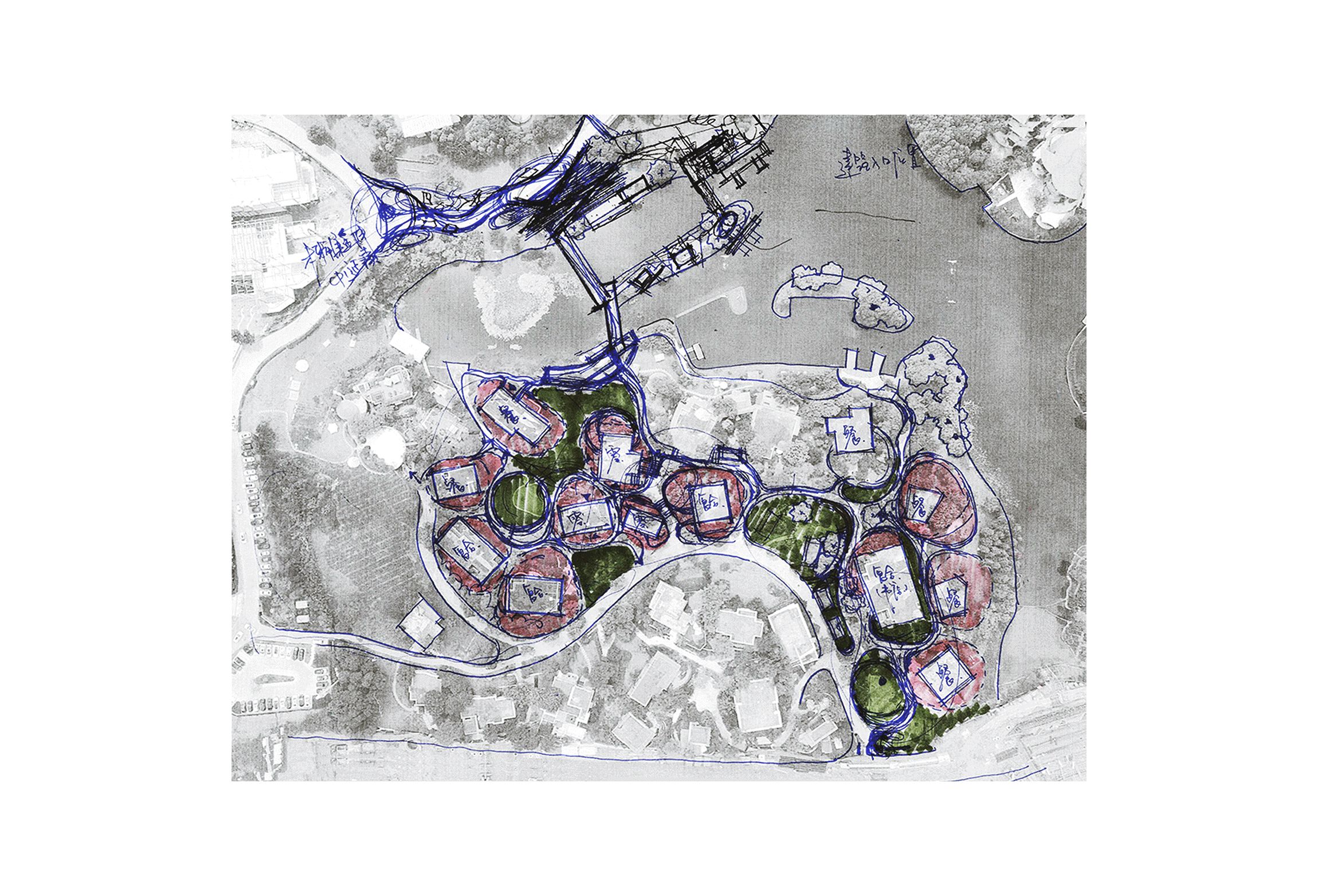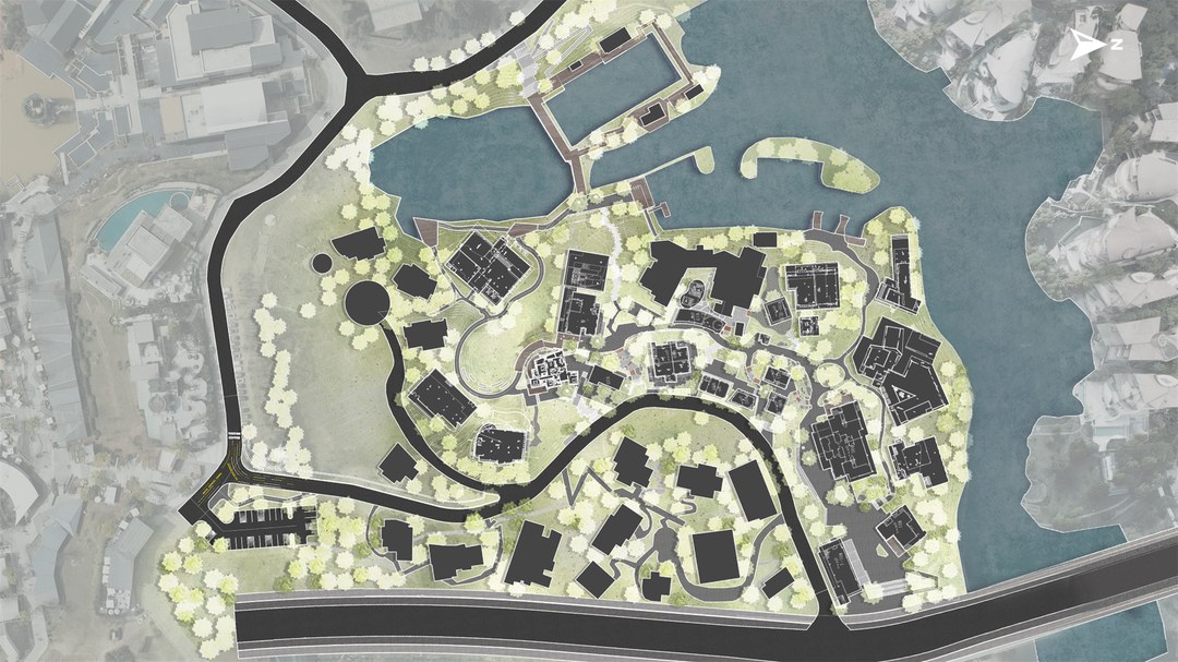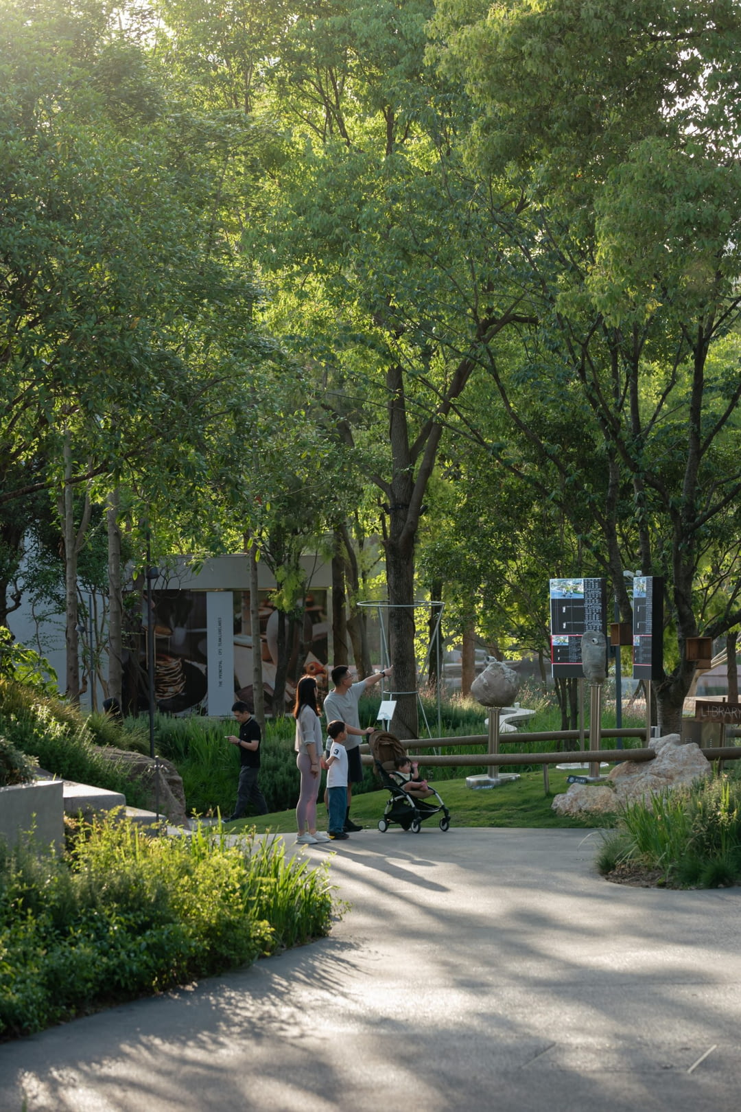 CPI is located in Luhu Lake Ecological City, with a landscape area of approximately 30,000 square meters. It is adjacent to the core ecological water area and near the commercial group on Tianfu Avenue. In the future, with the construction and use of the external municipal road, the project site will also be one of the gateway areas for tourists arriving at Luxe Land and Tianfu Food Island. The site is introduced by a vehicular mainline, with a height difference of about 9 meters across the first phase. Previously, sample islands built over the past decade were densely vegetated, with buildings nestled within. However, this also limited visibility, creating a space composed of various small sub-spaces.
