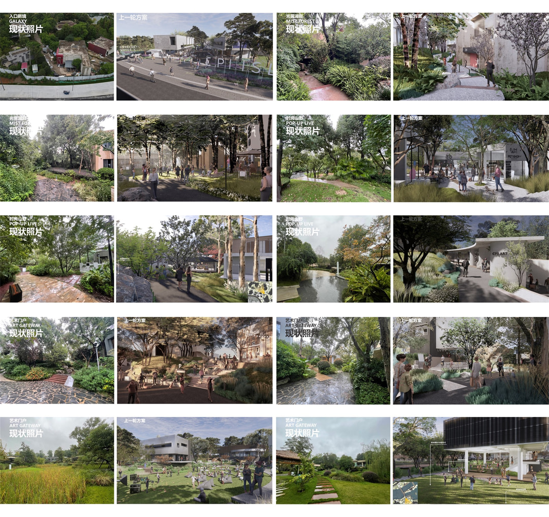 我们反复走场,找出最具特点的场景节点,用梳理确定出来的场地设计,与原始状态反向扣合,保留场地特色的前提下,再次进行设计方案的比对、阶段复盘。因为项目进度紧张,各专业同步推进,同时业主运营团队密切在阶段设计过程中对接运营、品牌需求,在阶段设计中不断比对、调整和优化,也是为后期整体项目开放的细致度精准扣合的必要过程。