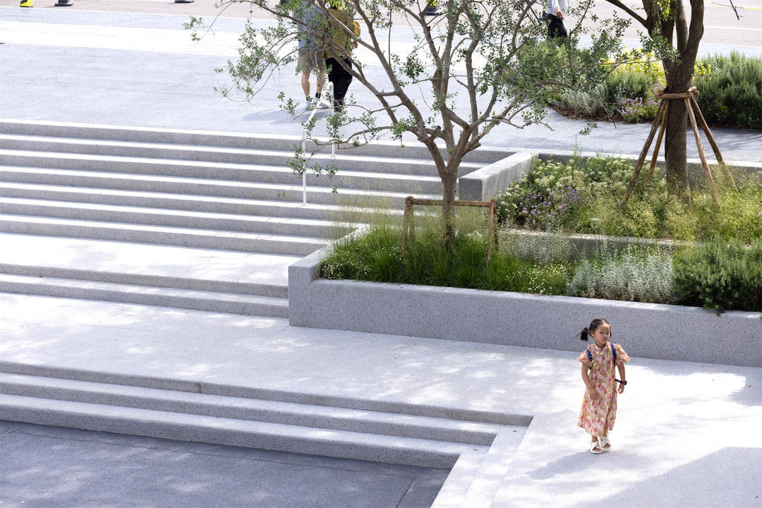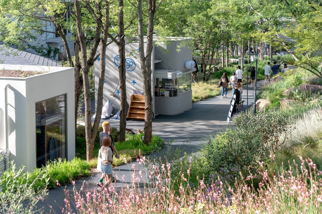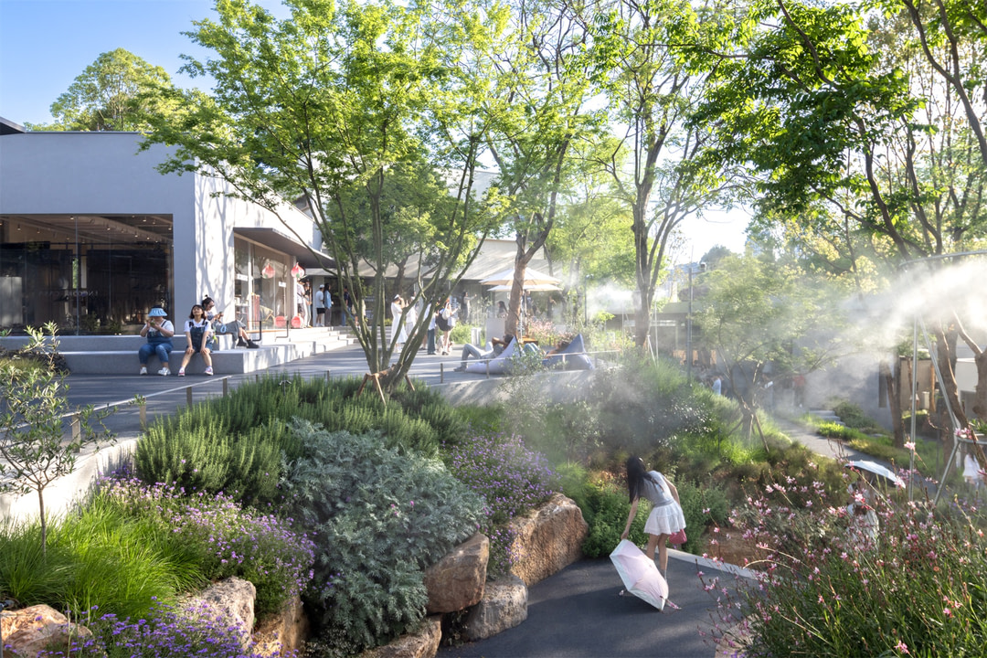 Our overall design approach integrates the site holistically, from hardscape paving and materials to the plant system. We aim to think in terms of long-termism, not only adhering to the initial cost-saving principles of the project but also expressing sustainability through a low-maintenance environmental system. We hope that repeat visitors will find joy in the changes to the site and that these changes will enhance their shopping experience.