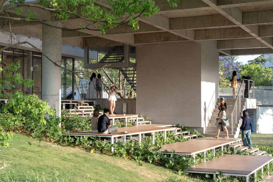 ▽更新的艺术空间外侧,人们倚靠长凳休息 People Resting on Benches Outside the Renovated Art Space