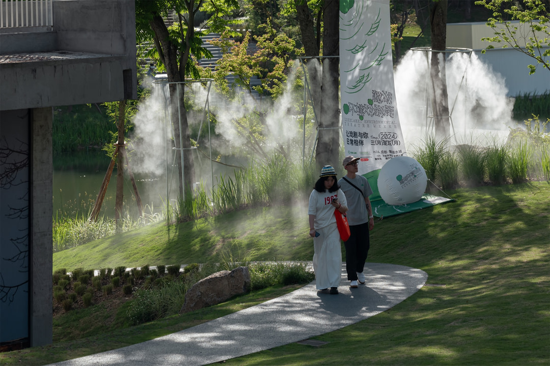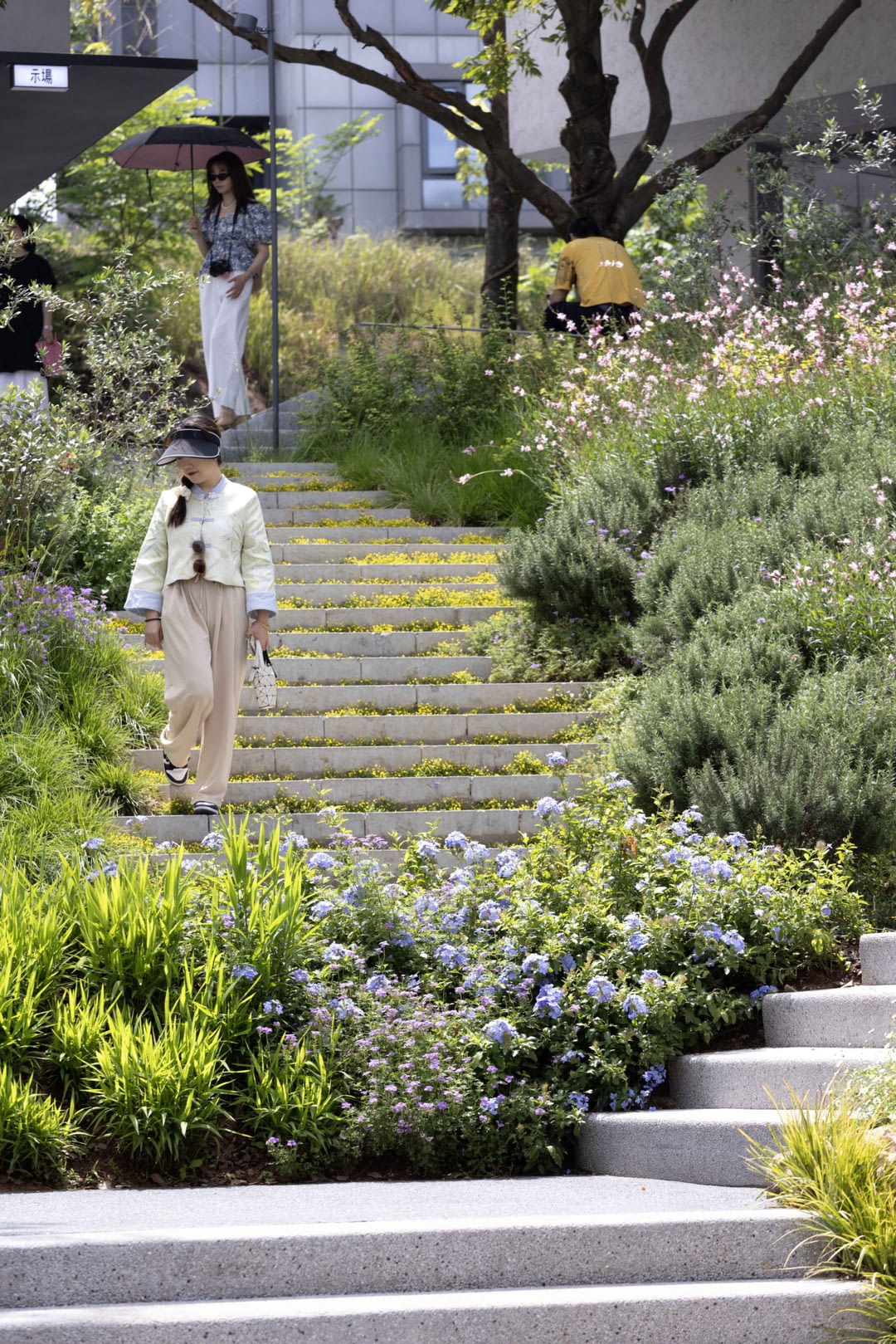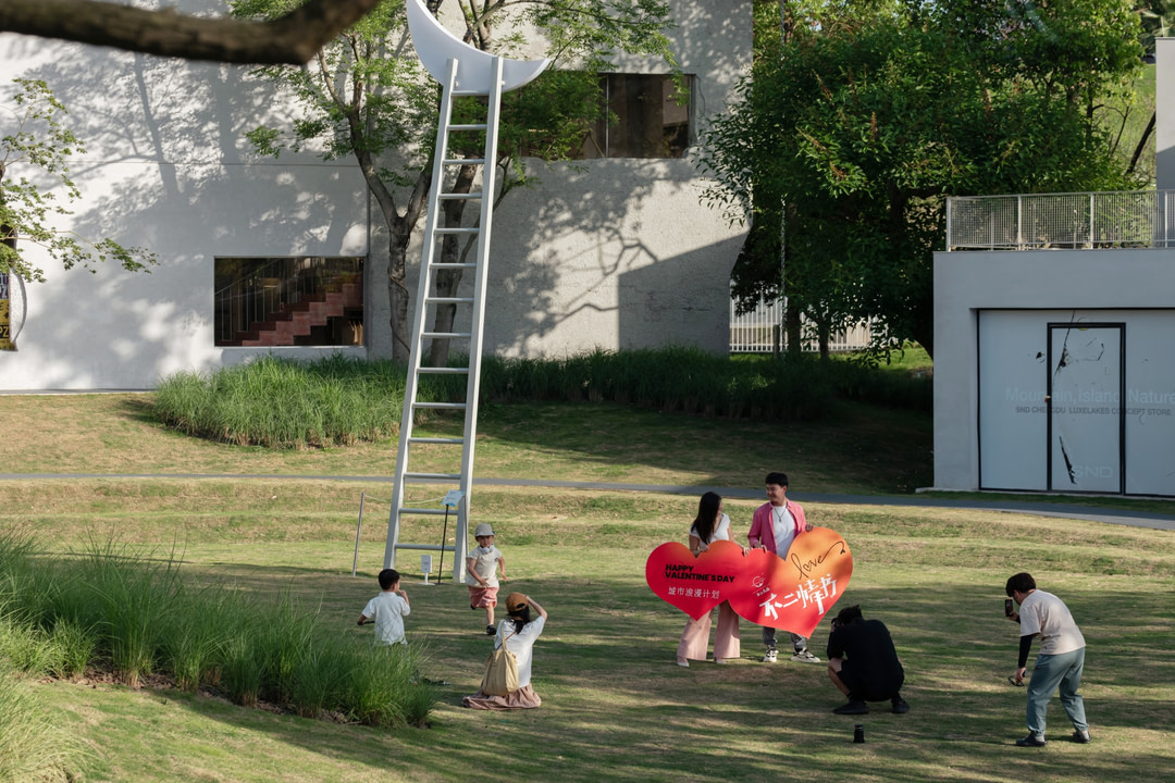 ▽改造后的阶梯草坪展陈的艺术装置 Art installations on the renovated terraced lawn