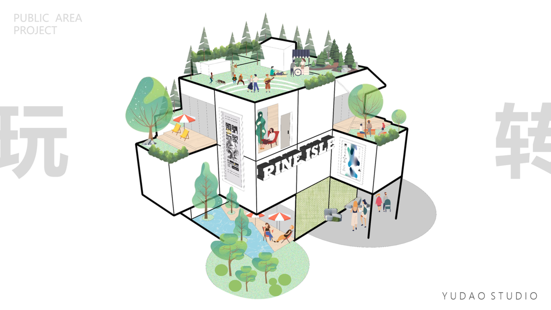 为此,我们在原场地生态泳池区域也规划新建及改造了不同体量的盒子商业,被业主链接赋予多重定义的有趣空间。Pop-up 是商业项目中能带来持续活力且适配度极强的空间,设计的考量更多是以此作为出发点。