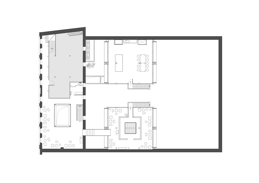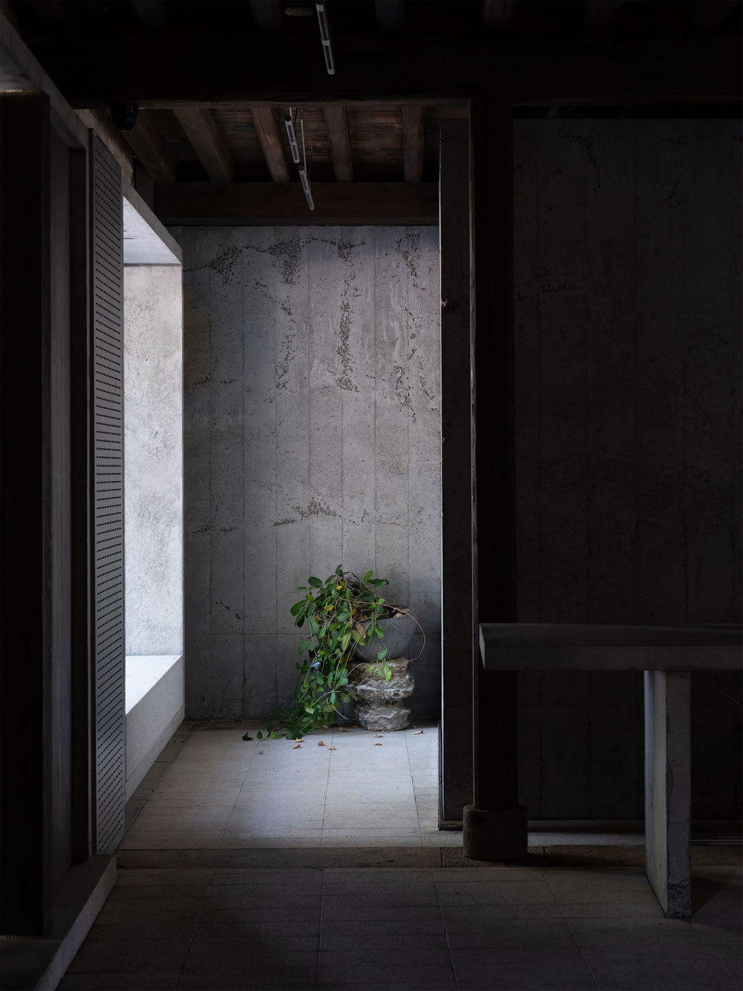 另一个我们的共识是:比起一个闭塞的消费空间,我们更希望它是足够开放的,因此你会看到这个三进式宅院的第一进被充分展示给了街道,入口释放了它递进式的结构,大的橱窗将街上的人轻松引入。只有少量的商品在第一进被展示,人们走进这座百年大宅里闲逛、休息、观看传统的建筑结构,比起商铺它更像一个具有公共功能的空间,但这种 “奢侈” 的空间使用也将激发进一步探索的好奇心。