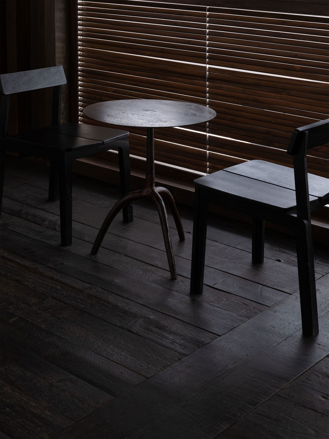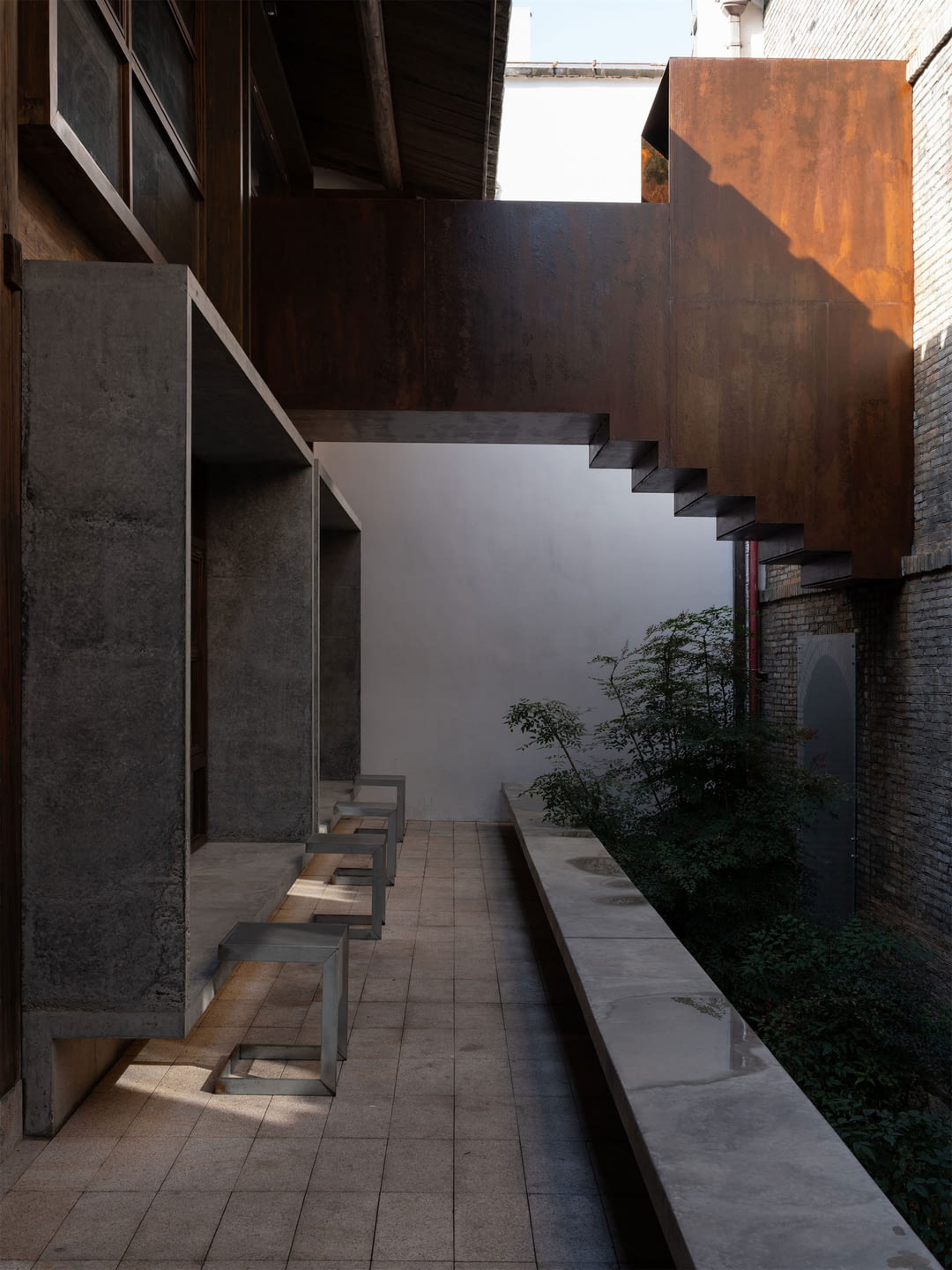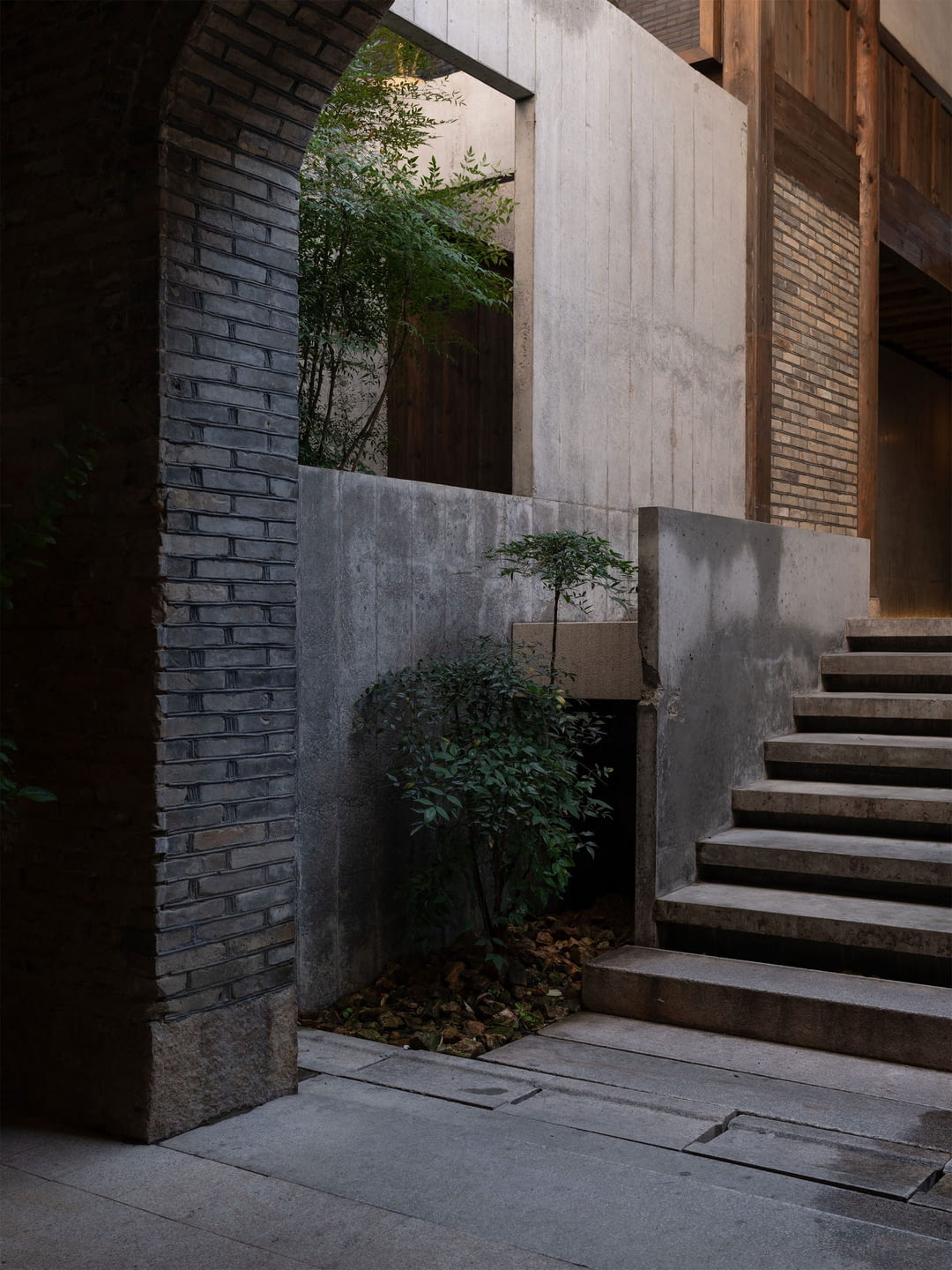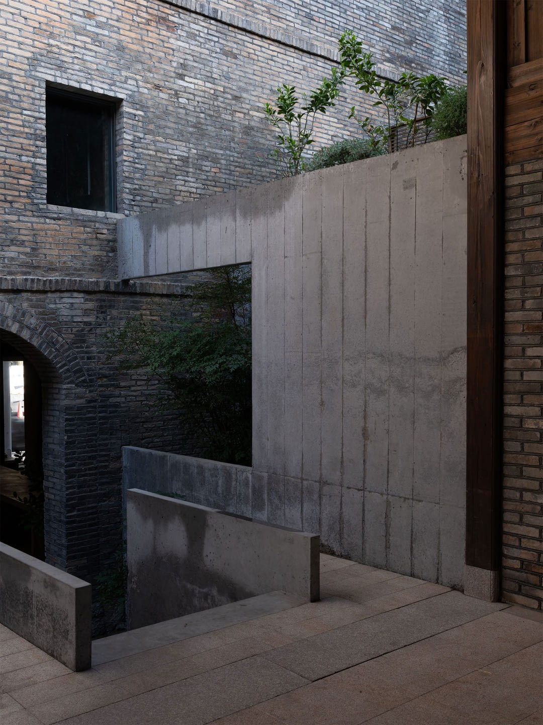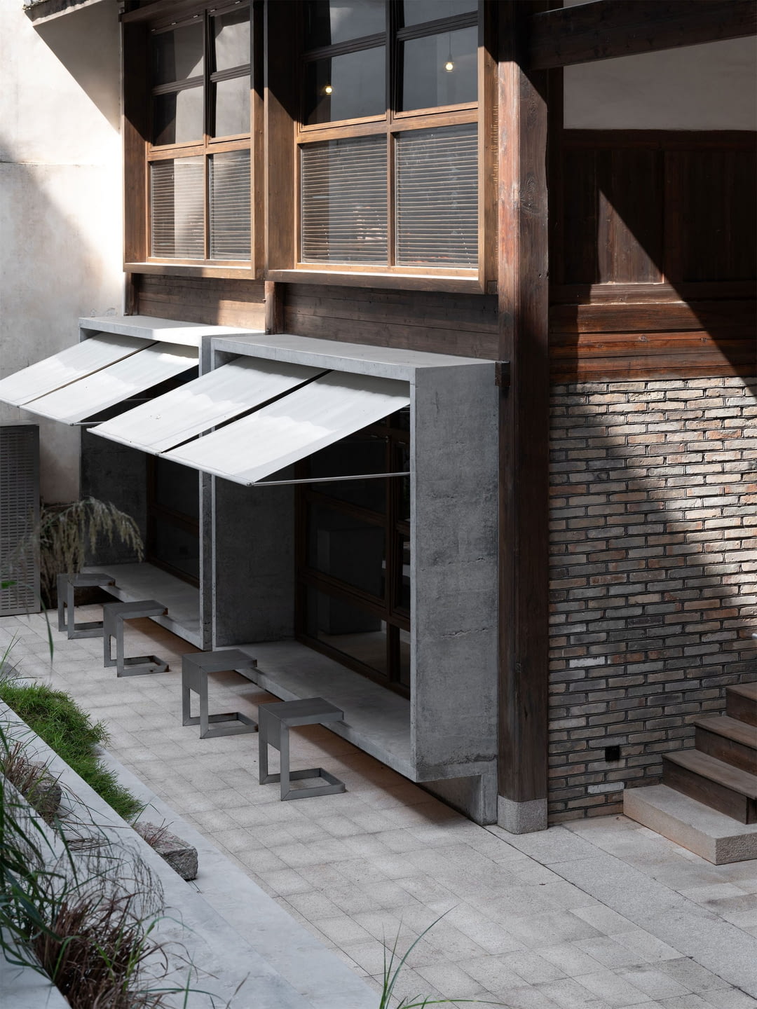In terms of the use of furniture, outdoor furniture, like facade finishing, presents a certain sense of order. The indoor furniture is a mix of modern designer furniture, traditional courtyard stone tables, iron tables handmade by craftsmen and mid-century modern furniture from the 1970s and 1980s or European chairs with a sense of age. The warm and moist bricks, wood, ash walls and the history of this building are enough to accommodate a combination of different periods and styles.