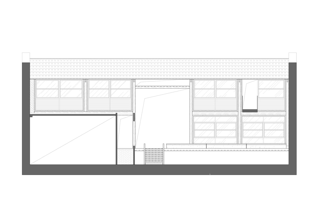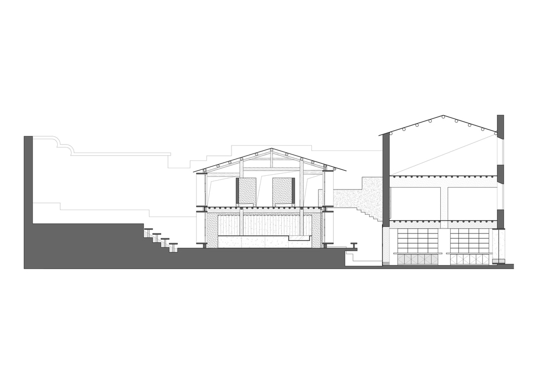The space between the first and second floor and the one between the first and second entrance are connected by patios, sliding windows and connecting corridors. The originally small and closed wooden shophouse is opened. Wide window sills have become seating areas. The excessive height difference between the shophouse and the yard is absorbed by stepped seats. The entire outdoor area is connected, so people can sit down wherever they want. The big yard, which was originally used to dry olives, is now a rough natural landscape. We piled rocks, scattered gravel and sowed grass seeds. The next time when we were there, lush plants had emerged from the gravel, hiding a path among them. We want it to be different from chic gardens and exquisitely carved landscapes.